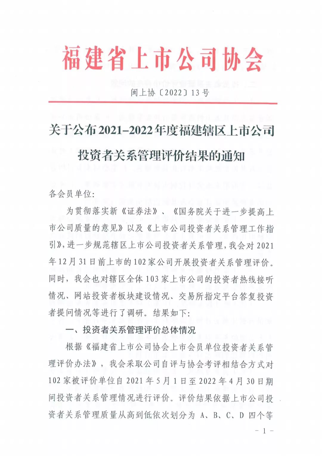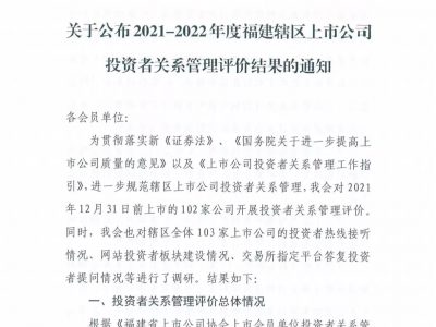 近日,福建省上市公司協(xié)會(huì)公布了2021-2022年度福建轄區(qū)上市公司投資者關(guān)系管理評(píng)價(jià)結(jié)果。集團(tuán)憑借卓越的投資 […]