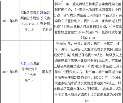 另外,國家五年規(guī)劃也在不斷提高環(huán)保行業(yè)的投入要求,水環(huán)境治理是其中的重要部分: