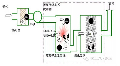 脫臭原理:將有臭味地氣體通過(guò)煙囪排至大氣,或用無(wú)臭空氣稀釋,降低惡臭物質(zhì)濃度以減少臭味