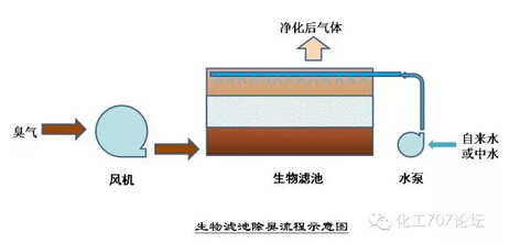 適用范圍:只有針對(duì)某些惡臭物質(zhì)而降解的微生物附著在填料上,而不會(huì)出現(xiàn)生物濾池中混和微生物群同時(shí)消耗濾料有機(jī)質(zhì)的情況