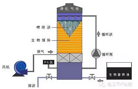 脫臭原理:原理同生物濾池式類似,不過(guò)使用的濾料是諸如聚丙烯小球、陶瓷、木炭、塑料等不能提供營(yíng)養(yǎng)物的惰性材料。