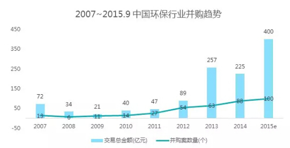如果寫一部環(huán)保產(chǎn)業(yè)并購史,“十二五”的這五年一定配得上“波瀾壯闊”這四個字,環(huán)保產(chǎn)業(yè)以遠超出上一個階段的并購數(shù)量和并購資金規(guī)模完成了第一次千億級的資源整合。