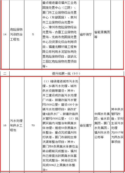 福建2017年投資工程包實(shí)施方案 涉多個(gè)環(huán)保項(xiàng)目
