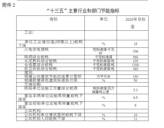 2.“十三五”主要行業(yè)和部門節(jié)能指標(biāo)