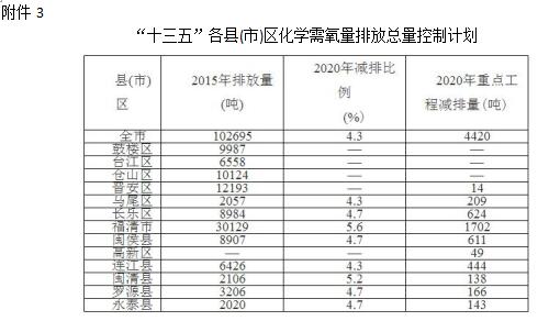 3.“十三五”各縣(市)區(qū)化學(xué)需氧量排放總量控制計(jì)劃
