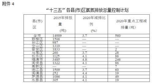 4.“十三五”各縣(市)區(qū)氨氮排放總量控制計(jì)劃