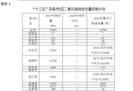 5.“十三五”各縣(市)區(qū)二氧化硫排放總量控制計(jì)劃