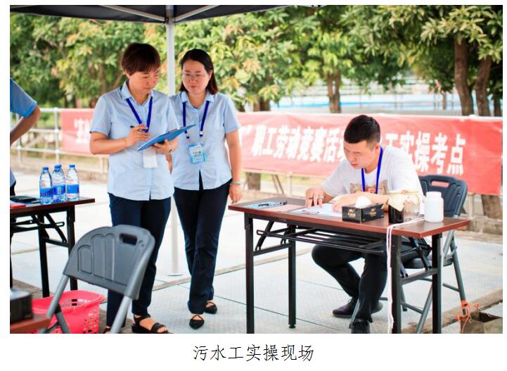 此次職工技能競賽按照污水處理工和污水化驗監(jiān)測工的不同崗位職責,編為兩組。每組分別完成理論和實操考試,合計滿分100分。在實操考試中,化驗監(jiān)測工需在規(guī)定時間內(nèi)完成氨氮密碼樣的測定;污水處理工同樣要在規(guī)定時間內(nèi)完成20個問題點的巡檢、異常工藝分析、設備故障排查與出水采樣操作。