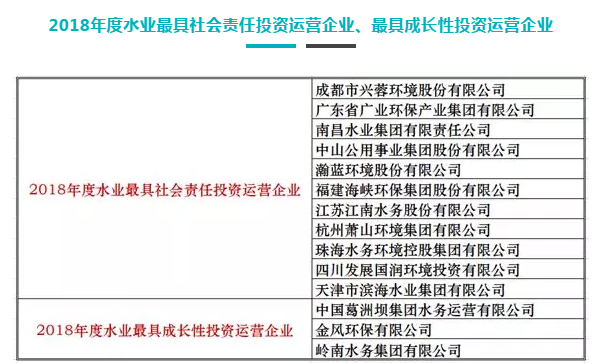 3月23日,由國(guó)家級(jí)產(chǎn)業(yè)智庫(kù)E20環(huán)境平臺(tái)主辦的“2019(第十七屆)水業(yè)戰(zhàn)略論壇”在北京開幕。集團(tuán)榮獲2018年度“中國(guó)水業(yè)最具社會(huì)責(zé)任投資運(yùn)營(yíng)企業(yè)”稱號(hào)。在此之前,集團(tuán)曾蟬聯(lián)2016和2017年度?“中國(guó)水業(yè)最具成長(zhǎng)性投資運(yùn)營(yíng)企業(yè)”稱號(hào)。