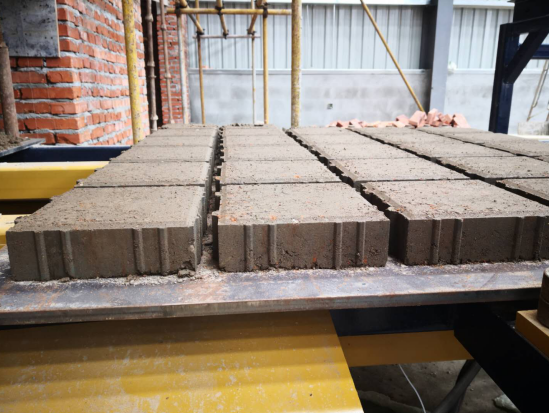 5月6日上午,在海濱子公司的制磚車(chē)間,伴隨著機(jī)器的轟鳴聲,一排排碼得整整齊齊的透水磚從傳輸帶上魚(yú)貫而出。這是龍峰項(xiàng)目“出爐”的第一批樣板磚,完全采用公司自主研發(fā)的產(chǎn)品原料配比,標(biāo)志著公司設(shè)備調(diào)試和試生產(chǎn)初戰(zhàn)告捷。