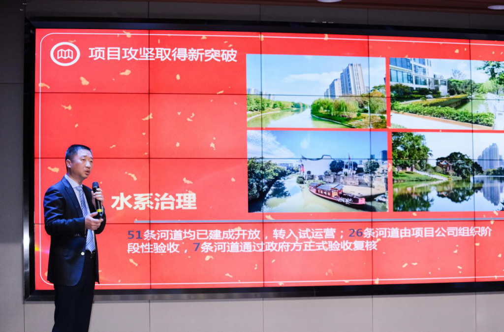 水務(wù)公司黨委書記、董事長(zhǎng),海環(huán)公司董事長(zhǎng)陳宏景作了振奮人心的講話。他回顧了公司2019年的工作,這一年,水務(wù)公司在水系治理、四城區(qū)排水管網(wǎng)改擴(kuò)建工程、紅廟嶺垃圾滲瀝液相關(guān)項(xiàng)目等攻堅(jiān)中取得新突破;承辦全國(guó)第四屆水務(wù)高峰論壇,展示公司品牌與良好形象;繼續(xù)勇拓市場(chǎng),整合成立了濱海水務(wù)公司、福州市城市排水有限公司以及與寧夏水投成立的合資公司;數(shù)字水務(wù)項(xiàng)目上線的GIS管網(wǎng)系統(tǒng)實(shí)現(xiàn)了“物在線”;人才戰(zhàn)略繼續(xù)結(jié)出碩果,管理再上新臺(tái)階,科研創(chuàng)新多點(diǎn)開花,黨建工作強(qiáng)根鑄魂超額完成了上級(jí)部門下達(dá)的工作任務(wù)。