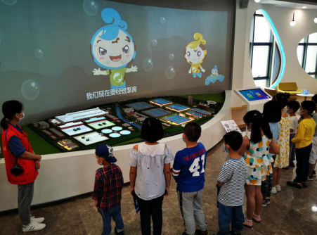 接著第二站來(lái)到生動(dòng)形象的環(huán)保科教館。在這里專業(yè)生產(chǎn)技術(shù)人員結(jié)合現(xiàn)場(chǎng)各種模型、互動(dòng)屏等,把古今中外的污水治理歷史、現(xiàn)代污水處理技術(shù)和循環(huán)城市理念展現(xiàn)在孩子們面前。