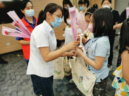 研學(xué)活動(dòng)結(jié)束后,洋里志愿者們還為孩子們送上了我們精心準(zhǔn)備的紀(jì)念品,小朋友們對(duì)可愛(ài)的“海寶”公仔愛(ài)不釋手?;顒?dòng)當(dāng)天恰好是母親節(jié),年輕的媽媽們也收到了我們特地準(zhǔn)備的康乃馨。