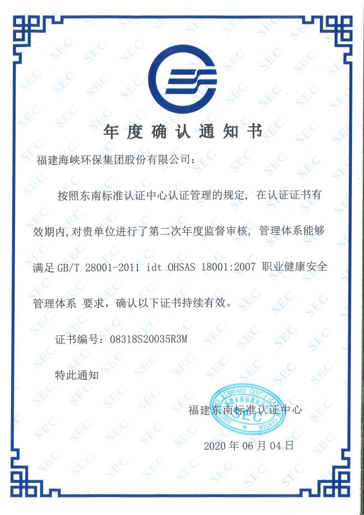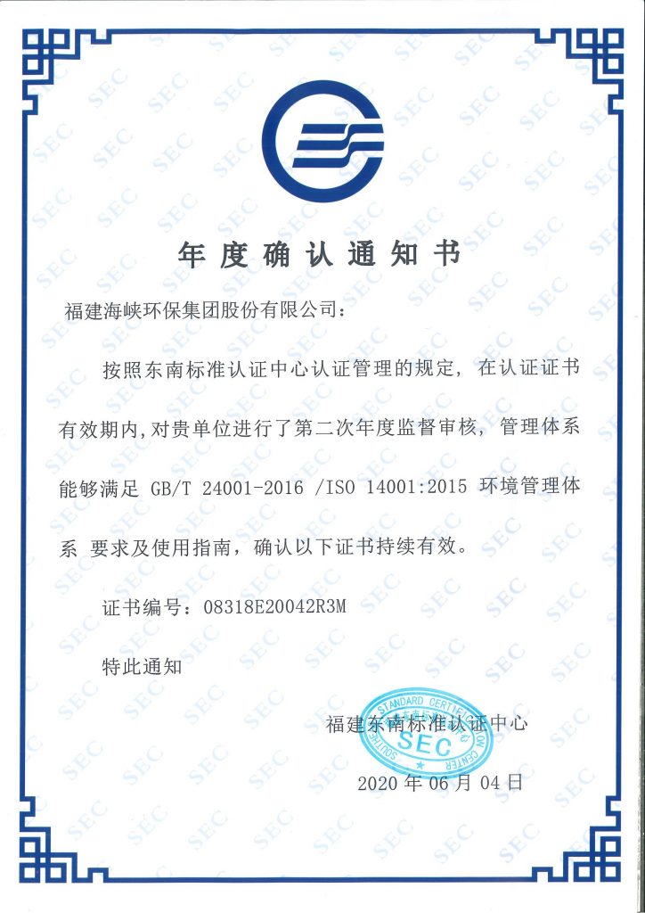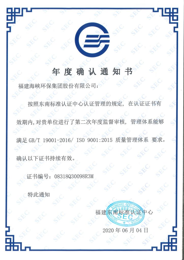 近日,福建東南標準認證中心出具年度確認通知書,集團順利通過2020年度“ISO三體系”第二次年度監(jiān)督審核。