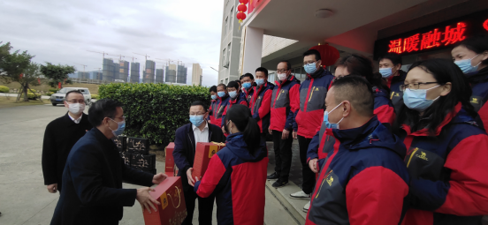 2月9日,在辛丑牛年春節(jié)來臨之際,福清市委常委劉必建、福清市住建局局長鄭衛(wèi)東帶隊,福清市總工會、福清市住建局一行蒞臨融元廠,向節(jié)日期間堅守崗位的員工們送上誠摯的問候和新春的祝福。