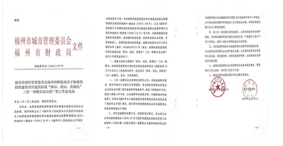 集團(tuán)下屬海資公司首創(chuàng)的建筑垃圾處理全過程“三位一體”管理和利用模式(拆除、清運(yùn)、資源化利用)是福州在資源綜合利用核心領(lǐng)域的新探索。市城管委、市財(cái)政局曾專門聯(lián)合發(fā)文,在全市范圍內(nèi)倡導(dǎo)推廣該模式。