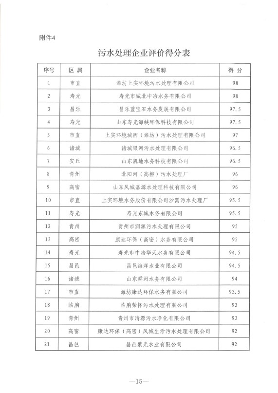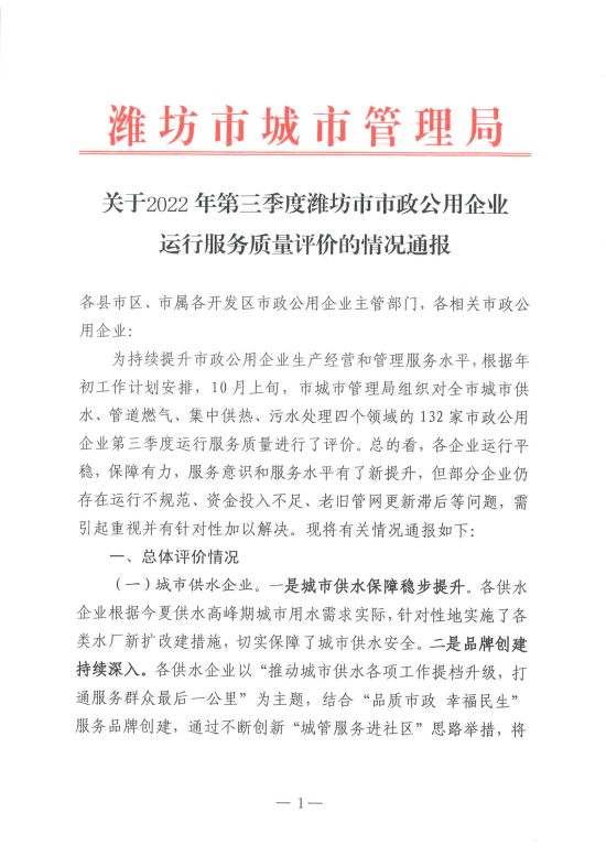 西城廠在濰坊市市政公用企業(yè)運行服務(wù)質(zhì)量評價中名列前茅
