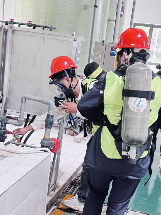 現(xiàn)場演練環(huán)節(jié),學(xué)員們根據(jù)演練腳本,穿戴好應(yīng)急設(shè)備,對現(xiàn)場模擬的生產(chǎn)安全事故開展現(xiàn)場應(yīng)急處置工作。