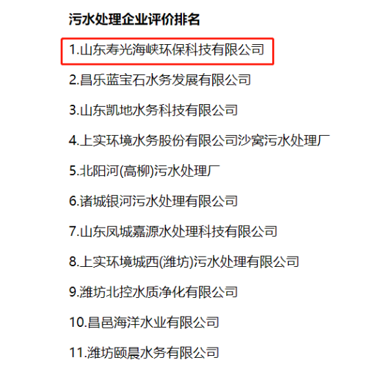 山東壽光海峽環(huán)保科技有限公司(以下簡(jiǎn)稱“壽光公司”)在本次服務(wù)質(zhì)量評(píng)價(jià)中再次脫穎而出,取得全市39家污水處理企業(yè)評(píng)比第一名。
