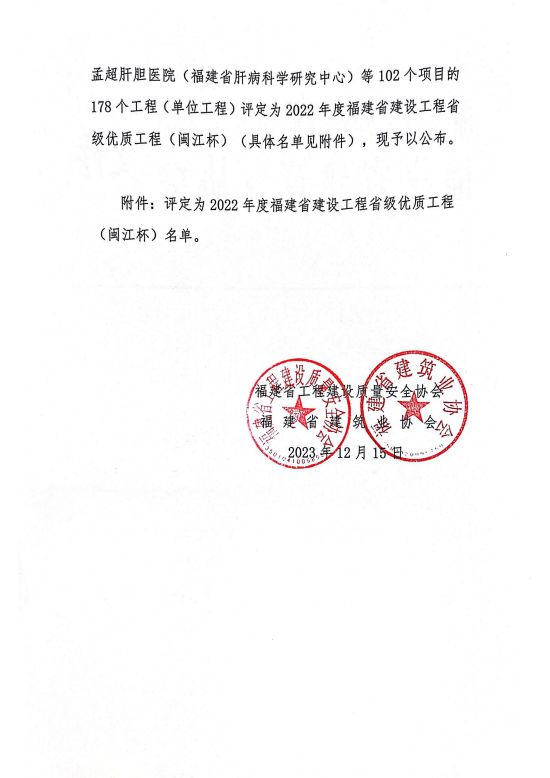 12月15日,集團(tuán)旗下浮村污水處理廠二期項目(以下簡稱“浮村二期項目”)獲評福建省“閩江杯”優(yōu)質(zhì)工程項目。這是該項目繼今年3月獲評福州市“榕城杯”優(yōu)質(zhì)工程項目后,在更高平臺上再獲榮譽(yù)。